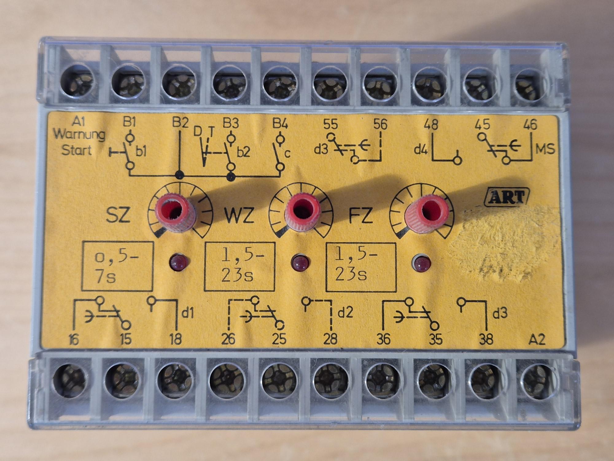 Bezpečnostní časové relé s funkcí upozornění před spuštěním, vhodné pro tiskové linky a otevřená zařízení. Použitý díl. Nelze využít pro nové instalace, pouze jako náhradní díl.