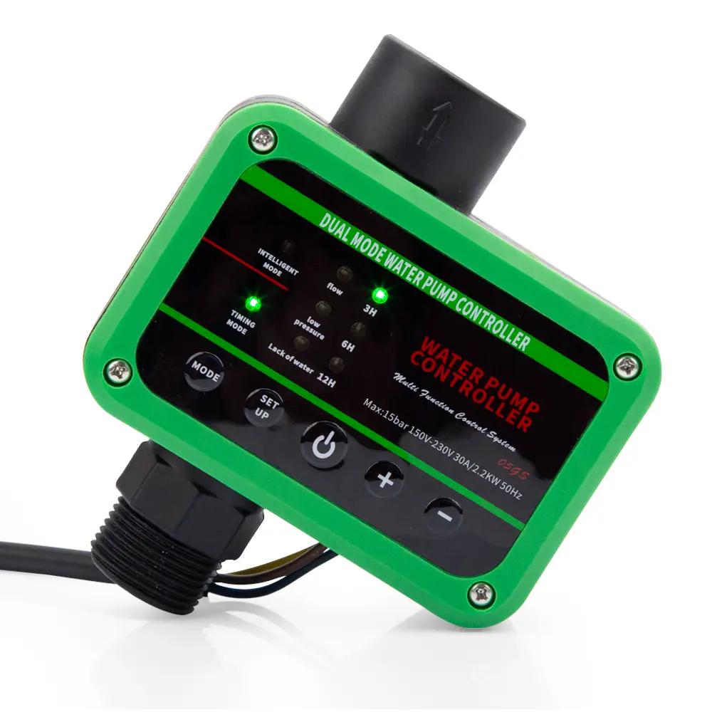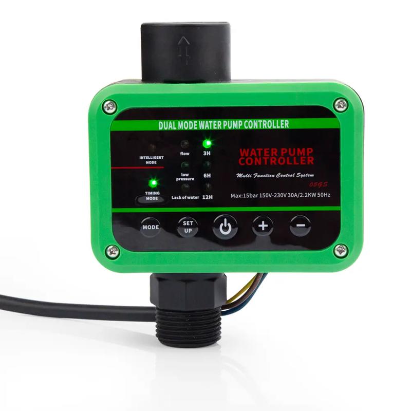 HD dvojitý digitální displej s rozdělenou obrazovkou, hodnota tlaku start-stop a hodnota tlaku uvnitř trubice v reálném čase na první pohled.Full LED stavové světlomety, lze vidět jakýkoli stav.Inteligentní režim: Průtokový spínač + tlakový senzor duální ovládání spuštění a zastavení.Rozsah použití 0- 10 kg. Vertikální výškový rozsah 0- 100 metrů, žádná specifická hodnota počátečního tlaku, hodnota vypnutí se automaticky generuje za kohoutkem (vrchol hlavy čerpadla), počáteční hodnota je 70 % zastavovacího tlaku.Tlakový režim: Tlakový režim: ovládání jedním snímačem, lze nastavit počáteční a koncovou hodnotu.Pokud je vstupní počáteční hodnota vyšší než hodnota zastavení, systém automaticky koriguje rozdíl tlaku mezi počáteční a zastavovací hodnotou na 0,5 baru. (Volitelná odstávka bez zpoždění).